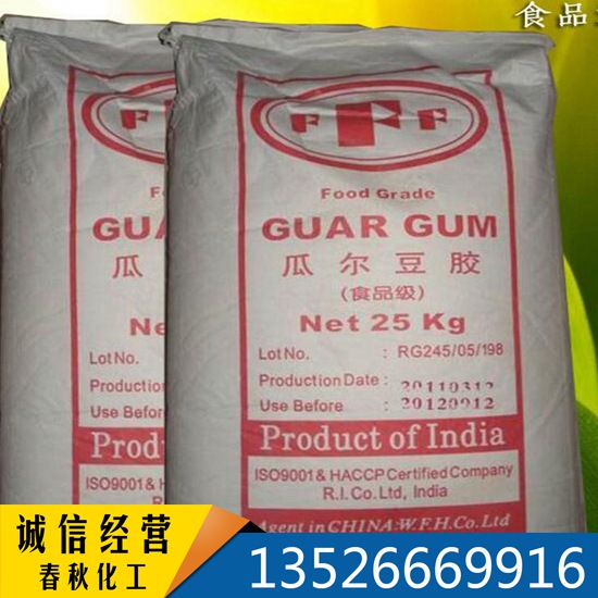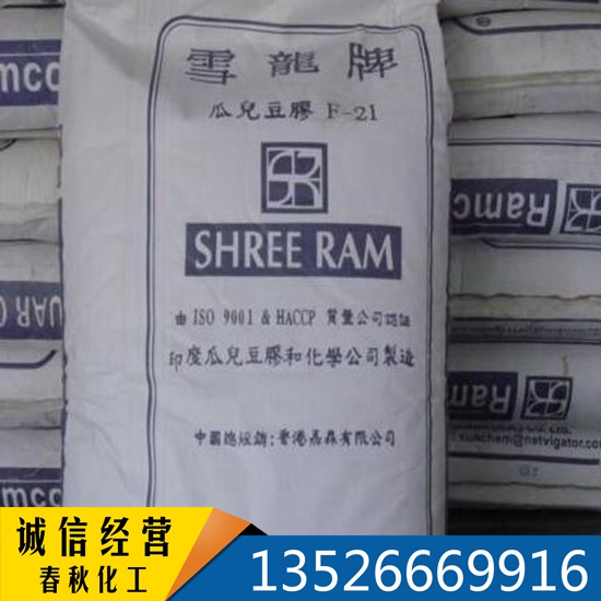 瓜爾豆膠 由豆科植物瓜爾豆(Cyamposis tetragonolobus)的種子去皮去胚芽后的胚乳部分,干燥粉碎后加水,進(jìn)行加壓水解后用20%的乙醇沉淀,離心分離后干燥粉碎而得。主要產(chǎn)地是巴基斯坦和印度的干燥地帶或美國的東南部。瓜爾豆膠適用標(biāo)準(zhǔn): QB2246-96瓜爾豆膠性能:主要成分是分子量為5萬-80萬的配糖鍵結(jié)合的半乳甘露聚糖、即由半乳糖和甘露糖(1:2)組成的高分子量水解膠體多糖類。白色至淡黃褐色粉末。能分散在熱或冷水中形成粘稠液。1%水溶液粘度約為4-5Pa·s,為天然膠中粘度最高者。添加少量四硼酸鈉則轉(zhuǎn)變成凝膠。水溶液為中性,粘度隨PH值的變化而變化,PH值6~8粘度最高,PH10以上則迅速降低,PH6~3.5內(nèi)隨PH值降低。PH3.5以下粘度又增大。